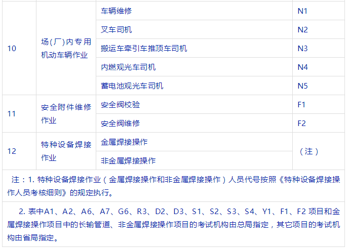 特種設(shè)備安全管理人員、叉車司機(jī)、起重機(jī)司機(jī)、起重機(jī)指揮、壓力容器、鍋爐、氣瓶充裝、電梯安裝與維修、觀光車、客運索道操作與修理、大型游樂設(shè)施操作與維修等等。